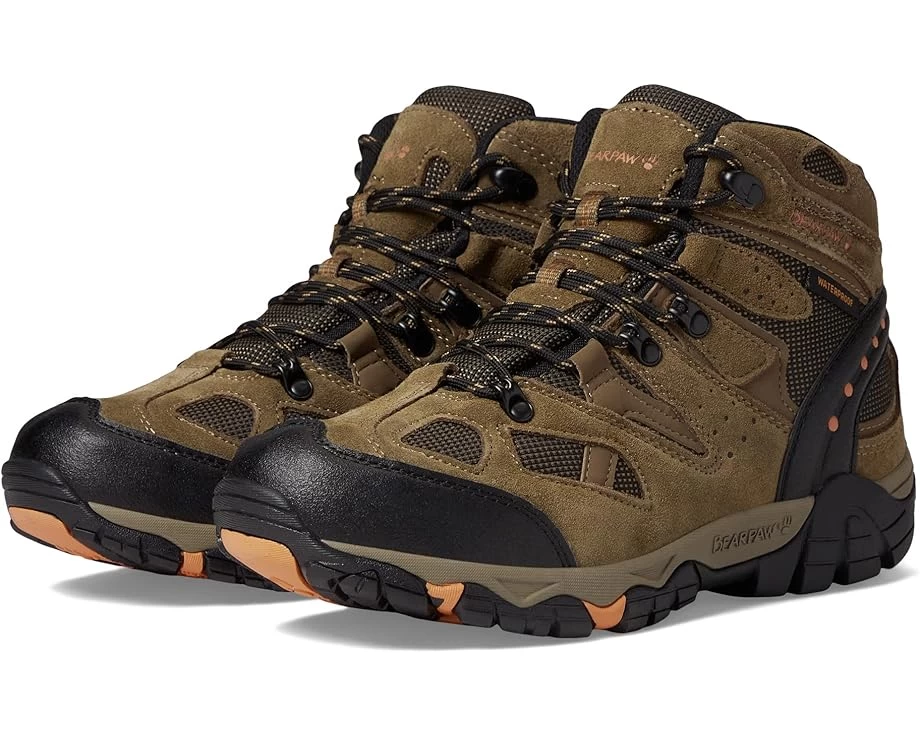 Designed to offer you the utmost comfort and style, the Bearpaw® Brock Waterproof Shoes are a perfect choice if you are heading for an outdoor adventure. SKU: #9790878Suede and mesh upper.Textile lining. Removable mesh footbed with memory foam underlay.NeverWet® technology for water and stain resistance.Classic lace-up closure. Ankle-height hiking boot design.Full bootie waterproof construction.Contrasting detail on the upper. Pull loops for easy wear and removal. Signature brand name on the tongue and outsole.Padded collar and tongue for superior cushioning. Round toe silhouette. Compression EVA midsole.Durable rubber outsole with high traction. Imported. Product measurements were taken using size 9, width M. Please note that measurements may vary by size.Measurements:
