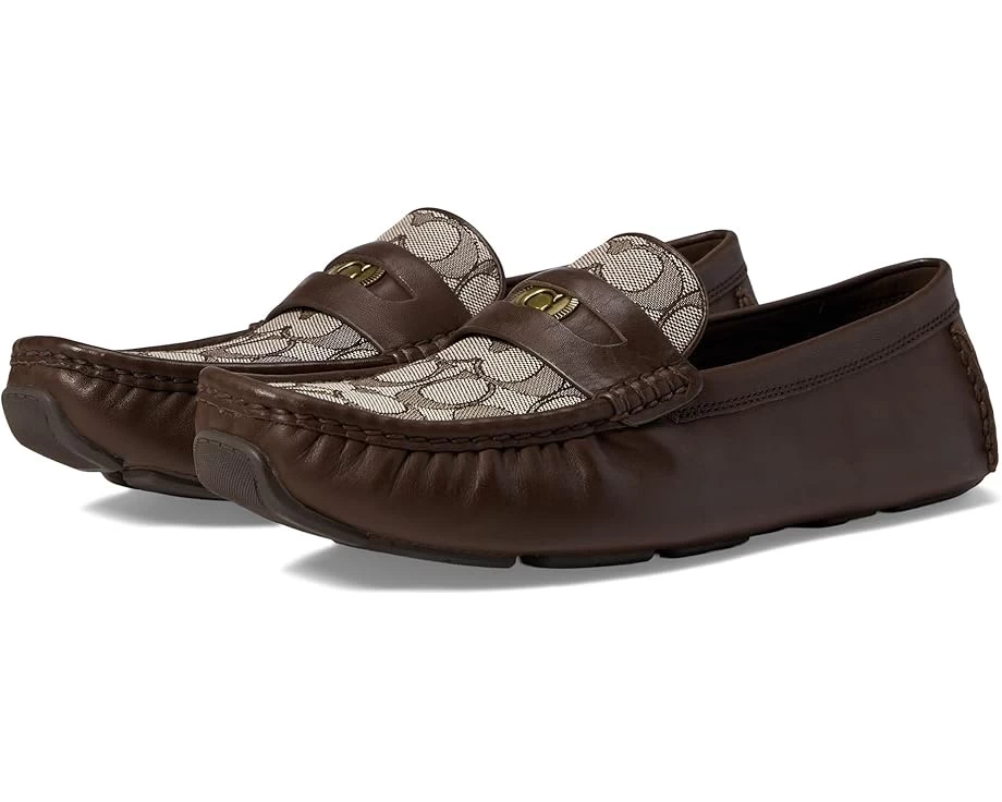 Please Note: COACHâ„¢ items cannot be shipped to military addresses (APO or FPO) and addresses in Hawaii, the Virgin Islands, Guam or any other locations outside of the continental US.SKU: #9839554Go unstoppable anywhere by wearing COACHâ„¢ Coin Signature Leather Driver footwear.Leather and textile upper.Leather and synthetic lining.Leather insole.Slip-on style.Round toe.Band detailing with metal branding on vamp.Synthetic treated outsole.Imported.Product measurements were taken using size 9, width D – Medium. Please note that measurements may vary by size.Measurements: