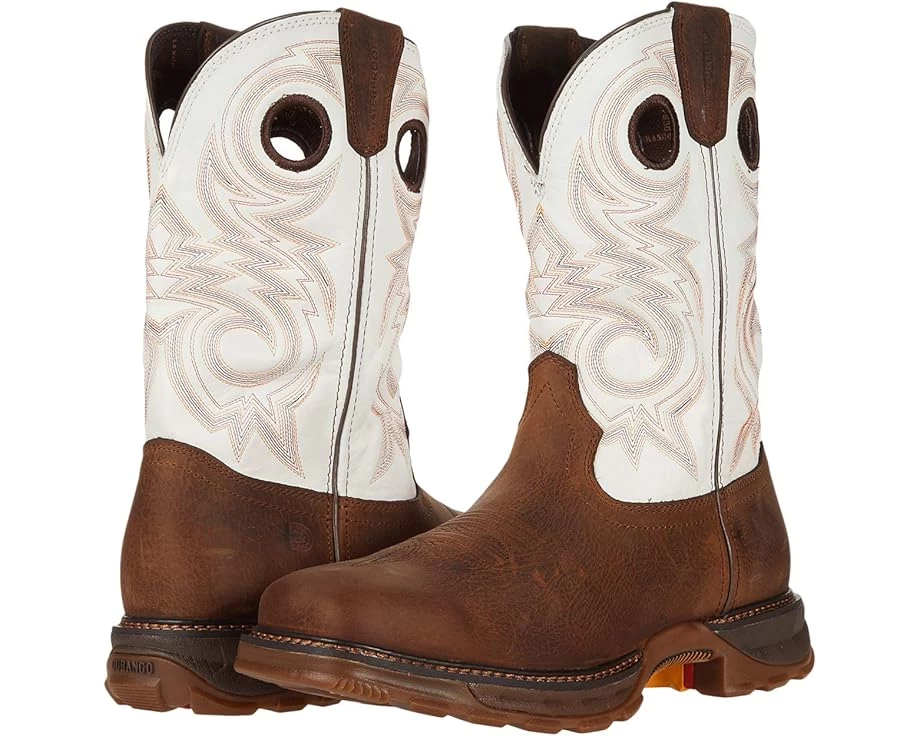 The Durango® Maverick XP 11″ Waterproof Western work boot provide superior protection, comfort, and support to keep you performing at your best every day.SKU: #9441917Style number: DDB0302.Soft toe work boot made of full grain leather uppers.Shaft area features the Durango X-Pand System that provides a universal fit for all calf sizes. It has a fully engineered design that includes a hidden elastic material located under each pull tab that expands an additional 2″ on each side for added room, comfort, and flexibility.Breathable air mesh lining. Removable and flexible X-treme Comfort PU insole with memory foam cushioning that forms to the shape of the foot for excellent underfoot support. Dual-density midsole with firmer shock-absorbing heel for added stability and a soft shock-absorbing forepart for ultimate flexibility and comfort.Internal fiberglass shank for added stability. Rolled shank area.Wide square toe with double row stitching.Rocker heel.Anti-torsion rigid external shank provides added lateral stability.Multi-durometer rubber outsole with high-abrasion rubber outer lugs for high-impact durability and softer durometer mid lugs for added flexibility and increased slip and oil resistance.Imported.Product measurements were taken using size 8.5, width D – Medium. Please note that measurements may vary by size.Measurements: