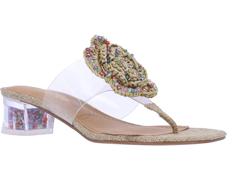 Make a subtle yet chic statement with your graceful style by slipping into the J. Renee® Abriana sandals. SKU: #9896659Clear polyurethane upper. Polyurethane lining with a Memory Foam and latex footbed.Easy slip-on style. Square toe with a toe post design. Huge woven floral accent on the foot with stone embellishments. Brand name embossed on the footbed.