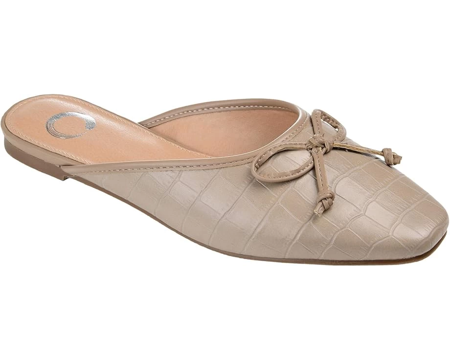 Journee Collection® Tammala Mule is wrapped in a faux croc skin with a bow on top. A subtle modern square toe perfectly balances this slip on mule.SKU: #9550031Square toe.Crocodile texture and bow detail.Padded footbed.Synthetic faux leather upper.Synthetic lining and footbed.Rubber outsole.Imported.Weight of footwear is based on a single item, not a pair.