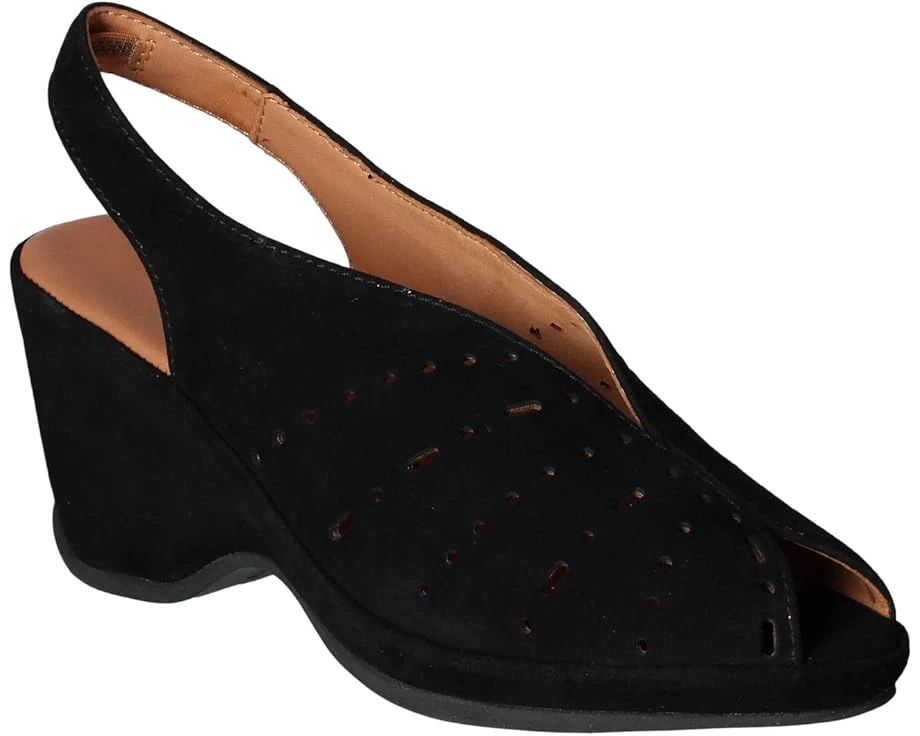 Head out in confidence by wearing the chic and timeless L’Amour Des Pieds® Leada pumps. SKU: #9860882Leather or suede upper with cutout accents. Leather lining and a cushioned memory foam insole. Easy slip-on style. Elasticized slingback strap for a snug fit. Peep toe silhouette. Wedge heel. Durable synthetic rubber outsole. Imported. Weight of footwear is based on a single item, not a pair.Measurements: