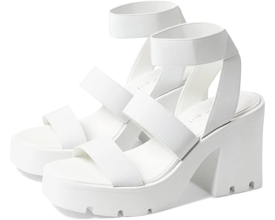 Bring on a sleek charm without compromising on comfort by donning the Madden Girl® Temple sandals. SKU: #9828832Fabric upper. Synthetic lining with a cushioned footbed. Easy slip-on style with an elasticized band on the ankle for a snug fit. Open square toe silhouette. Classic three-strap design. Brand name embossed on the footbed.
