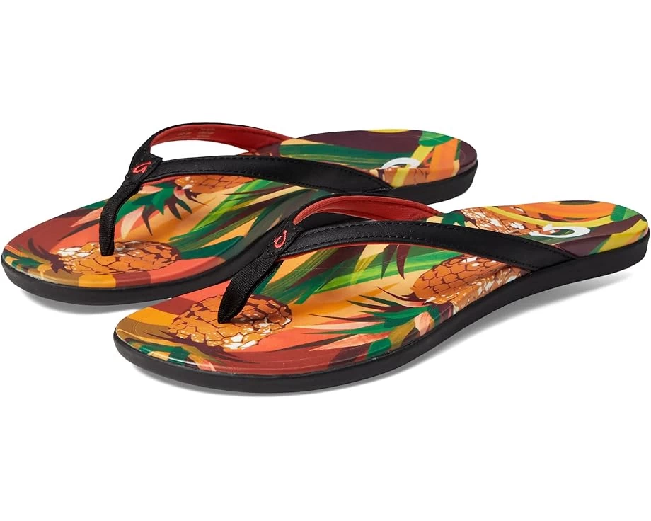 Olukai™ is a proud Certified B Corporation brand dedicated to meeting high standards for sustainability and social responsibility.SKU: #9543010Designed to be clean, simple, and playful- the OluKai™ Ho’opio Hau fills every step with island energy.Classic slip on thong sandal with fabric toe post. Contoured footbed with light cushion and textured outsole.Abstract floral print footbed. Synthetic upper.Synthetic lining and insole.Rubber outsole.Product measurements were taken using size 9, width B – Medium. Please note that measurements may vary by size.Weight of footwear is based on a single item, not a pair.Measurements:
