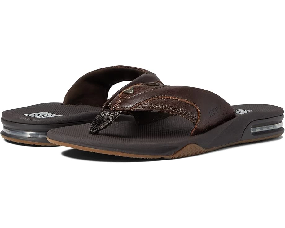 The Reefâ„¢ Leather Fanning Lux sandal offers a little high-end comfort while you chill with friends on the beach.SKU: #8765056Inspired by three-time surfing world champ Mick Fanning.Full grain leather upper.Contoured compression molded EVA footbed with anatomical arch support.Full 360º heel airbag enclosed in soft polyurethane.Church key to open your “soda” bottle.Durable rubber outsole with herringbone pattern for excellent traction. Imported.Product measurements were taken using size 8, width D – Medium. Please note that measurements may vary by size.Measurements: