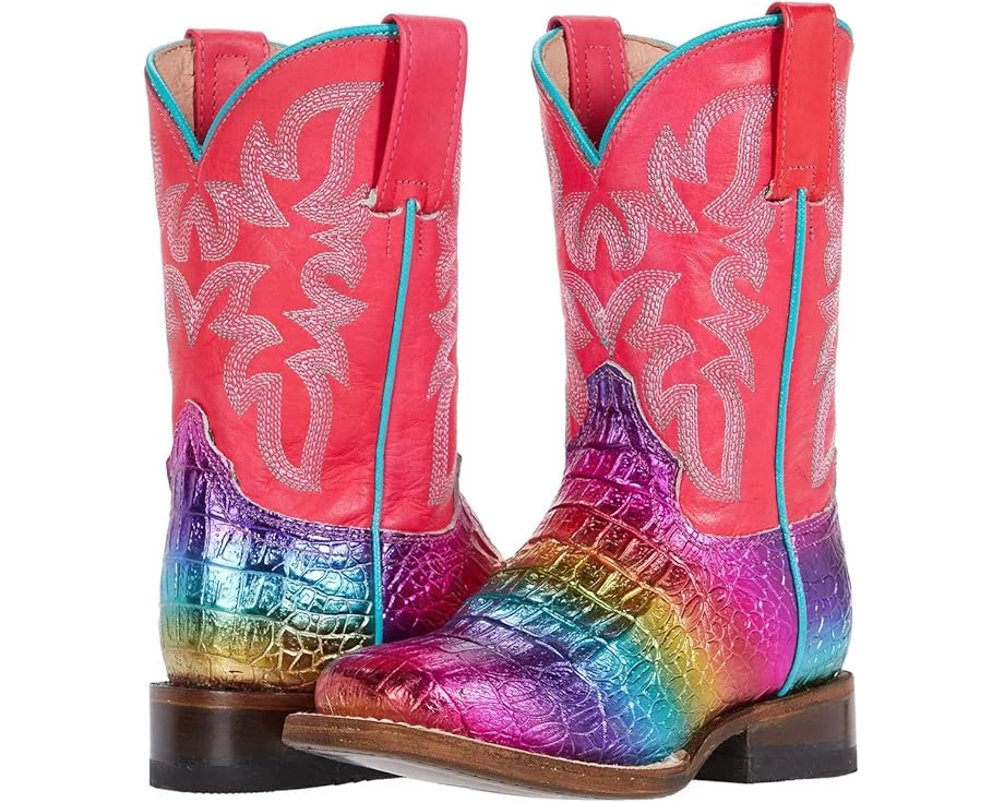 Help your little cowgirl make a lasting impression with the stylish Roper® Kids Ali boots. These slip-on western boots are crafted in a color blocked leather upper with winged stitching along the shaft. SKU: #9386548Rounded-toe boot features boot pull sides for easy entry. Constructed with a soft leather lining, two-layer removable REBOOT™ insole, and a stacked heel with a rubber tab.Imported.Product measurements were taken using size 2 Little Kid, width M. Please note that measurements may vary by size.Measurements:
