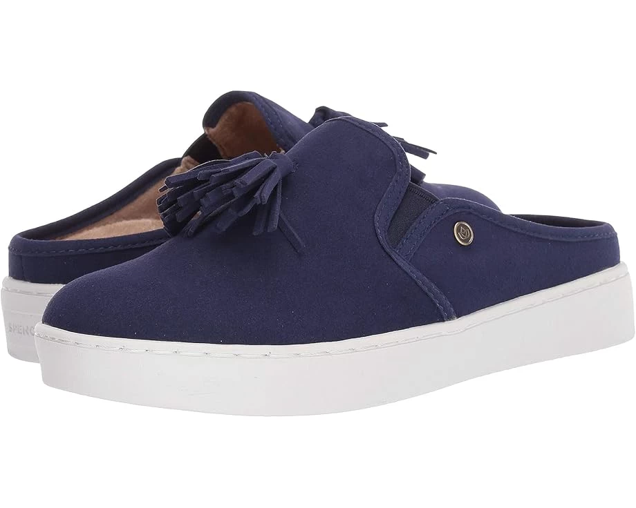 Slip into cute comfort with the SpencoĀ® Celine Slide.SKU: #9285917Faux-suede upper with a round toe.Tassel detail at vamp.Slip-on design with dual side goring.Features a molded EVA footbed with Spenco’s proven TOTAL SUPPORTĀ® Contour.Deep heel cupping and Orthotic-grade arch supportNon-slip, non-marking molded EVA outsole.Imported.Product measurements were taken using size 9, width B. Please note that measurements may vary by size.Measurements: