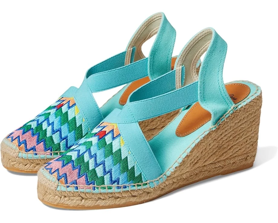 Take every step in style and experience comfort wearing Toni Pons® Gardinia Heels.SKU: #9853923Cotton upper.Cotton lining.Cotton insole.Round toe.Backstrap closure.Brand logo on insole.Wedge heel.Multi-color design on upper.Jute and rubber outsole for traction & durability.Made in Spain.Product measurements were taken using size EU 35 (US Women’s 5), width M. Please note that measurements may vary by size.Measurements: