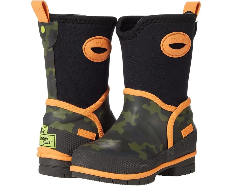 Let your little one conquer the cold with the Western Chief Kids™ Camo Neoprene Mid Boots. Perfect companion for those adventure trips!SKU: #9546671Neoprene insulation keeps the feet warm and comfortable at temperatures up to negative 30 degrees.Waterproof boots with rubber and textile upper.Breathable textile lining and insole.Pull-on construction.Round toe.Rubber lug outsole.Imported.Product measurements were taken using size 8 Toddler, width M. Please note that measurements may vary by size.Measurements: